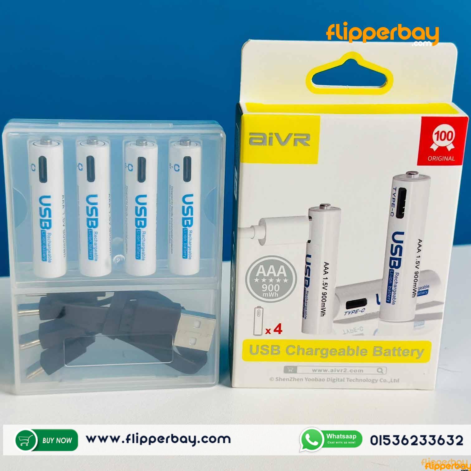 The AiVR USB-C Rechargeable Batteries 4pc (AAA-900mWh/AA-2550mWh) is now available in Bangladesh. Get the original products at the most affordable price at FLIPPERBAY.COM and enjoy the quality with the promise of the best customer service in Bangladesh.
