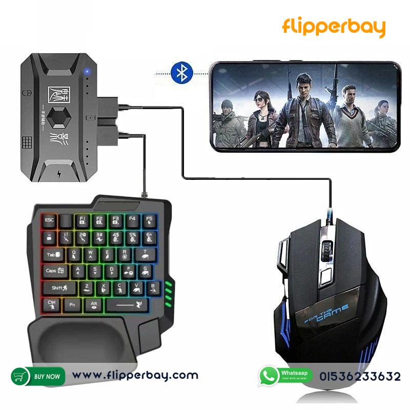 - Mobile Gaming Keyboard- Mouse Combo is a combination of gaming mouse and keyboard. It can be used for smartphones or tablets with Android 5.0+ systems. Both products are connected by Bluetooth and mobile games can be played with mouse keyboards. Each product can only be used for one device and the converter needs to be charged by a 5V power supply.