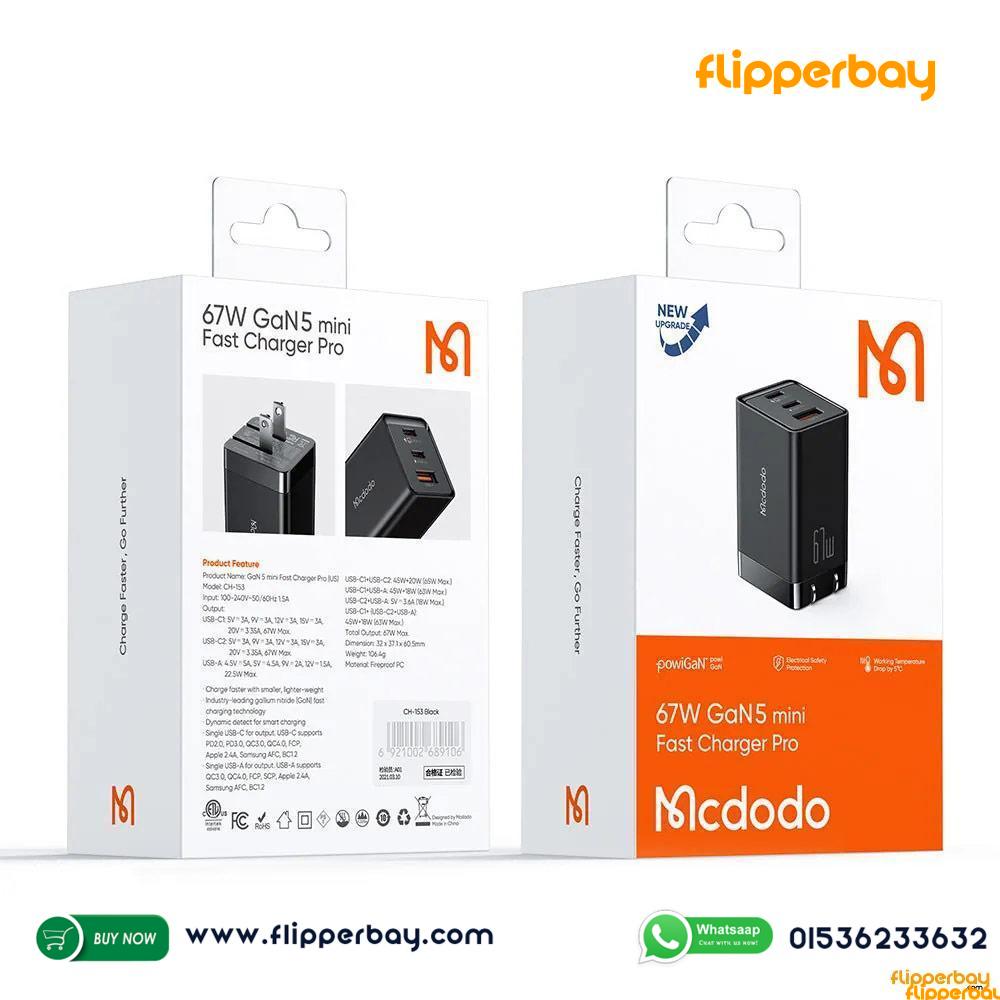 The Mcdodo CH-153 67W PD GaN5 Mini Fast Charging Pro Set is now available in Bangladesh. Get the original products at the most affordable price only at FLIPPERBAY.COM and enjoy the quality with the promise of the best customer service in Bangladesh.