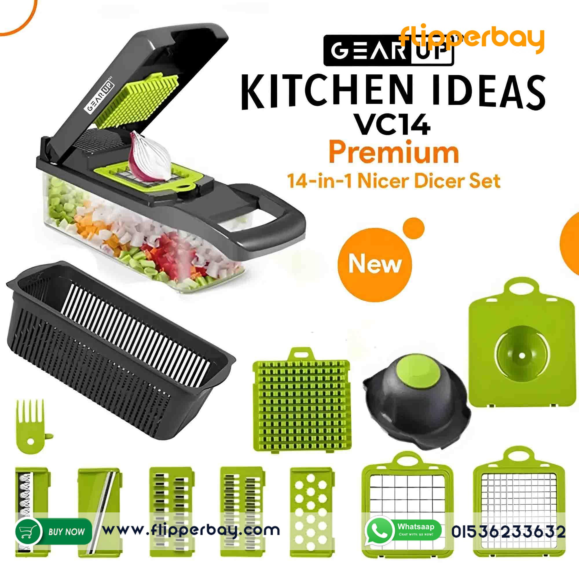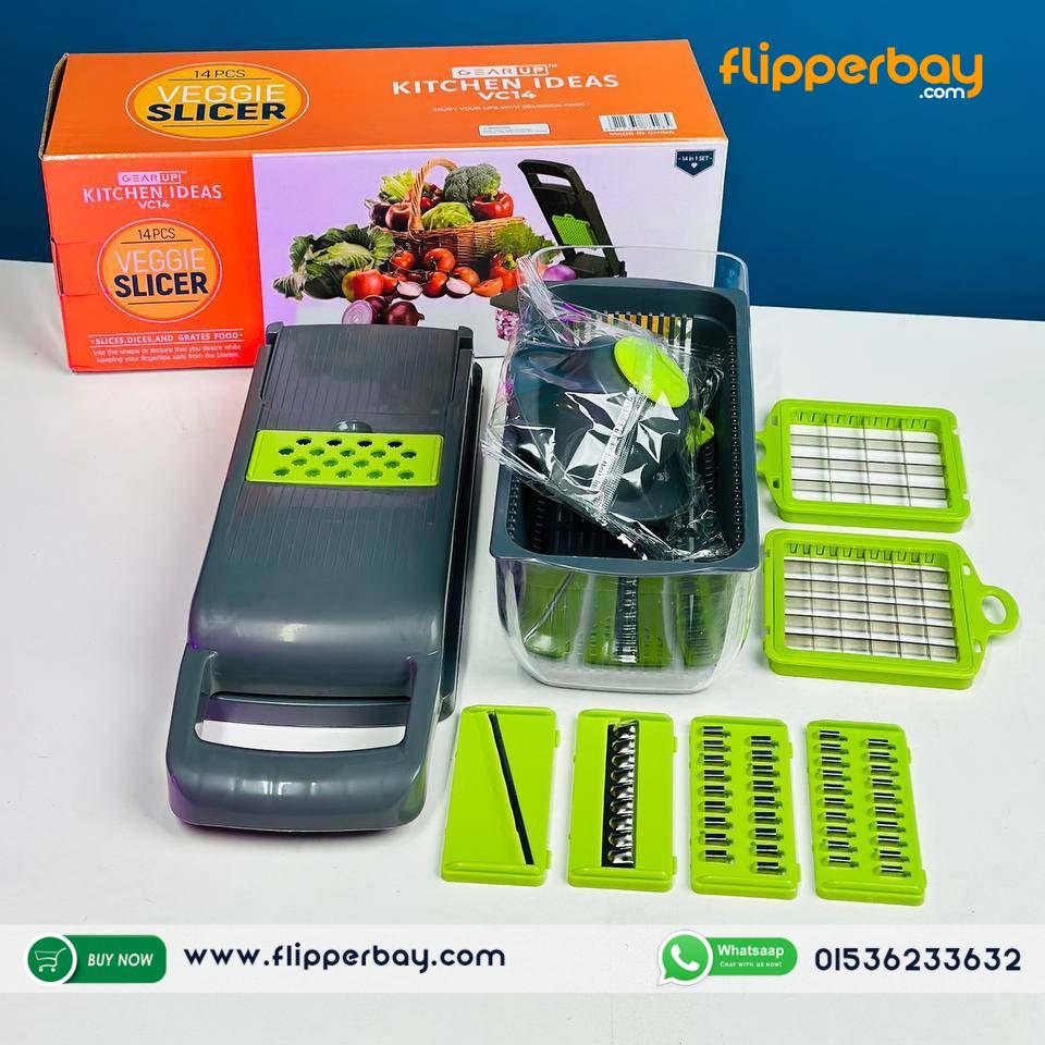 Upgrade your kitchen game with the GearUP VC14 Premium 14-in-1 Vegetable and Fruit Slicer — the ultimate solution for fast, safe, and professional-grade food prep at home. Say goodbye to messy chopping and uneven slices. Whether you're slicing, dicing, grating, or julienning, this multifunctional kitchen tool does it all with ease.