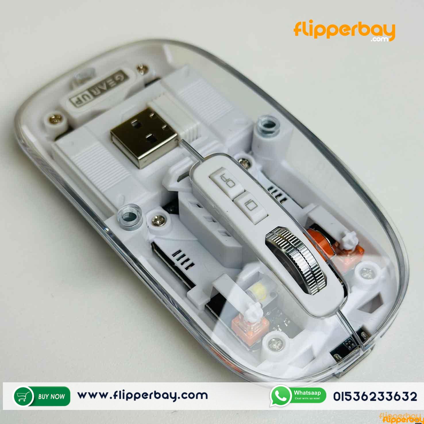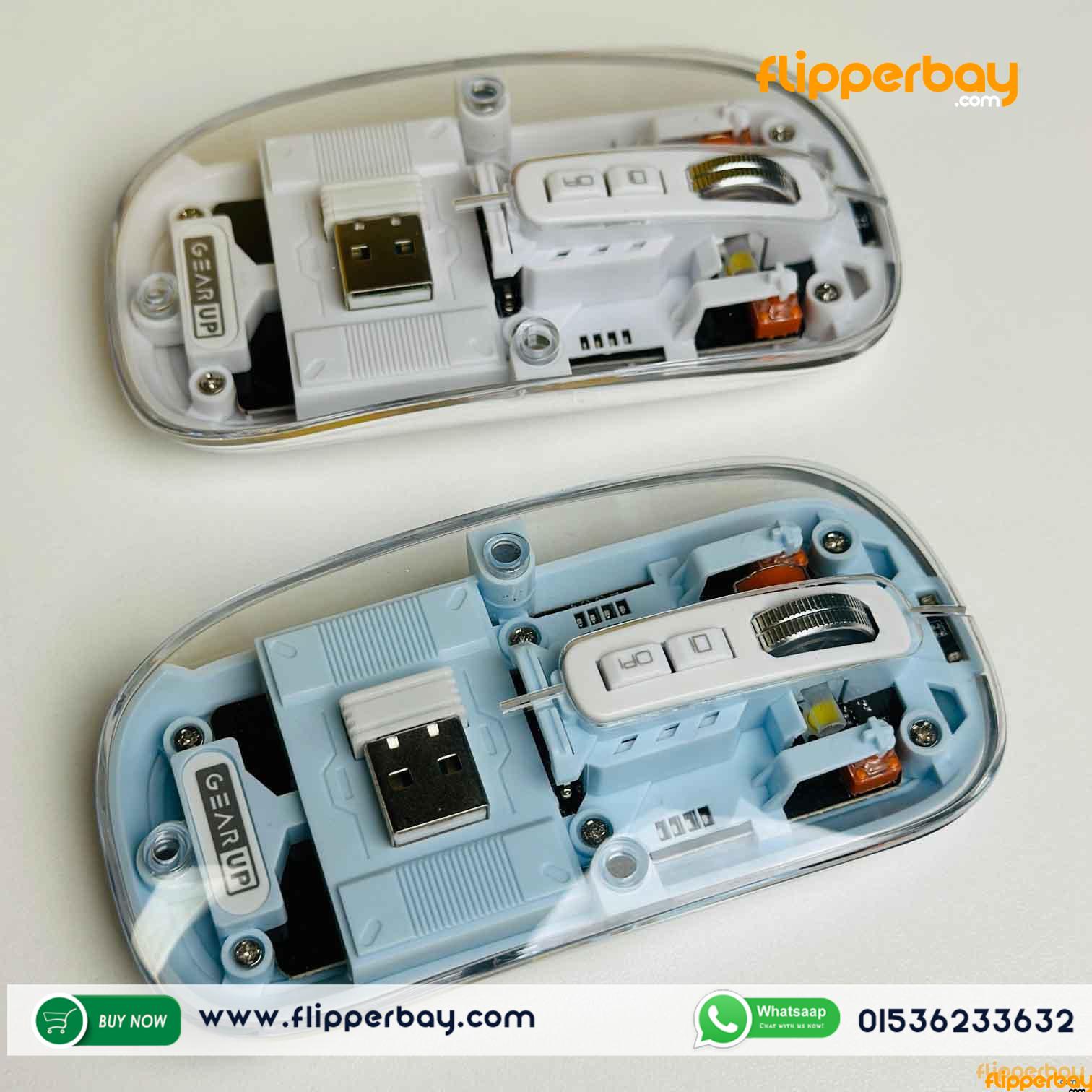 The GearUP WM30 Transparent Wireless Mouse is a stylish and functional mouse perfect for home and office use. It features a transparent body that allows you to see the inner workings of the mouse, as well as a comfortable ergonomic design that will help to reduce fatigue during long periods of use. The mouse also supports both 2.4GHz wireless and Bluetooth connectivity, so you can connect it to up to 3 devices at the same time.