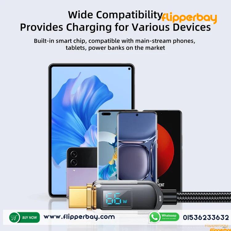 The Joyroom S-AC066A4 66W Digital Display Type C Fast Charging Data Cable 1.2m is now available in Bangladesh. Get the original products at the most affordable price at FLIPPERBAY.COM and enjoy the quality with the promise of the best customer service in Bangladesh.