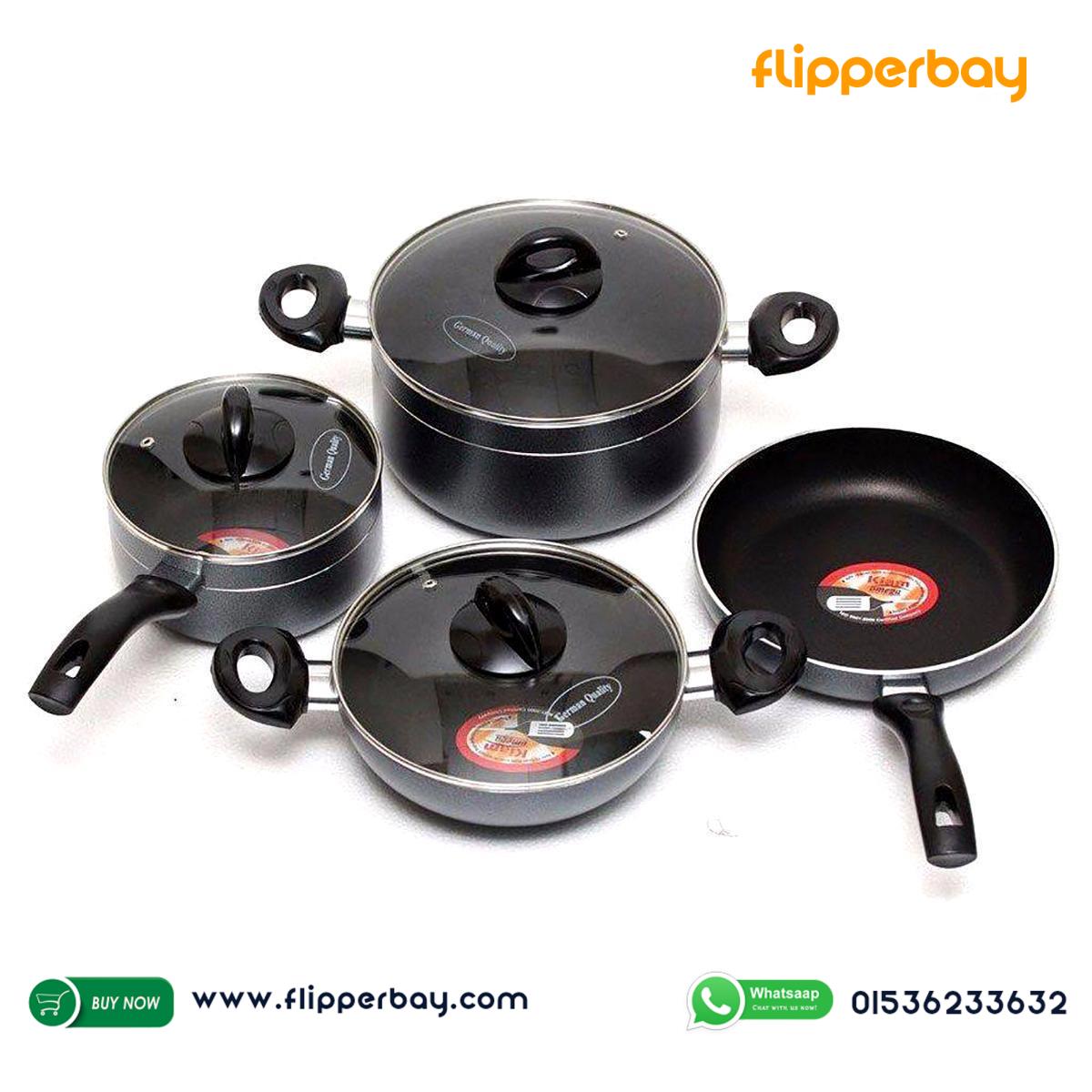 - Size: Casserol: 24 cm, Fry pan: 24 cm, Karai: 22 cm, Milk pan: 18 cm.
