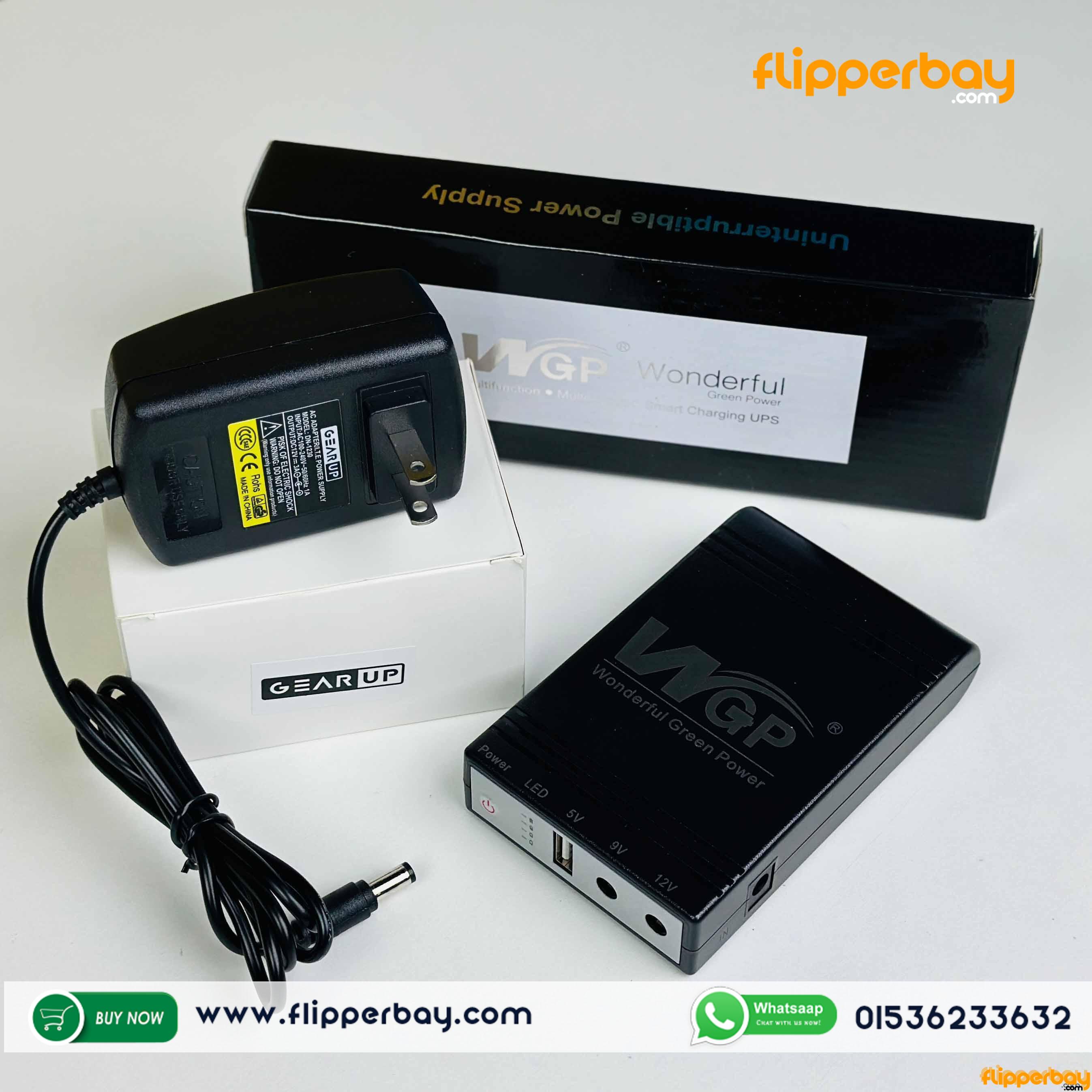 The WGP mini UPS (10,400mAh) with GearUp Adapter COMBO Pack for Router, ONU, IP Camera is now available in Bangladesh. Get the original products at the most affordable price at FLIPPERBAY.COM and enjoy the quality with the promise of the best customer service in Bangladesh.
